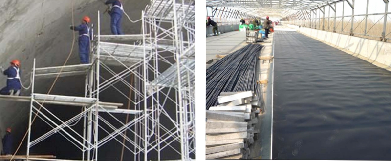 ECB防水板且具有优良的柔韧性、耐候性、抗穿刺性、延伸率高、耐应力开裂性、比重轻,适用于拱顶内面的防水材料。