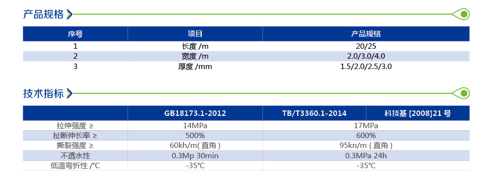 符合标准GB18173.1-2012《高分子防水材料 第一部分:片材》和TB/T 3360.1-2014《铁路隧道防水材料 第1部分:防水板》标准要求,且符合科技基[2008]21号 《铁路隧道防水材料暂行技术条件 第1部分:防水板》要求。